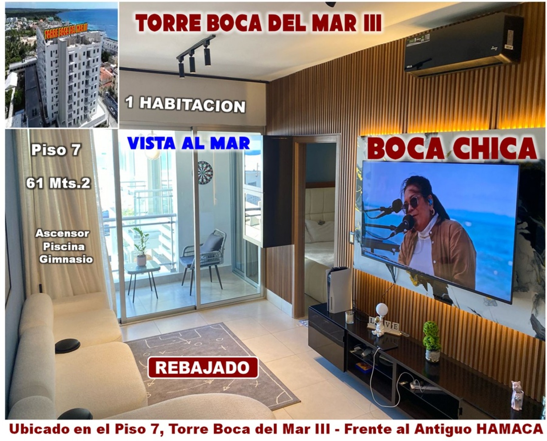 VENDO APTO CON VISTA AL MAR EN BOCA CHICA, TORRE BOCA DEL MAR III, 1 HAB., 61 Mts.2, PISO 7