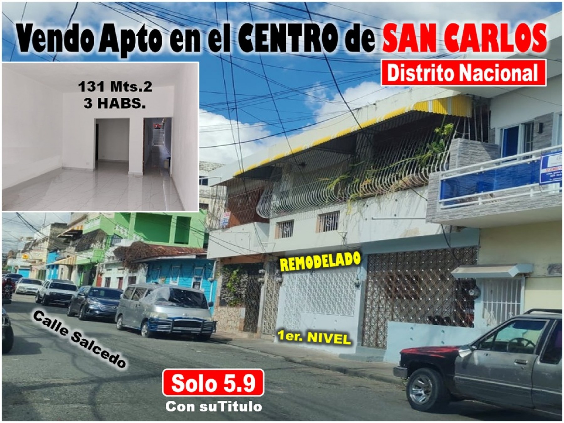 Vendo APTO REMODELADO en el DISTRITO NACIONAL, en San Carlos, 3 HAB, 131 Mts.2, 1er Nivel