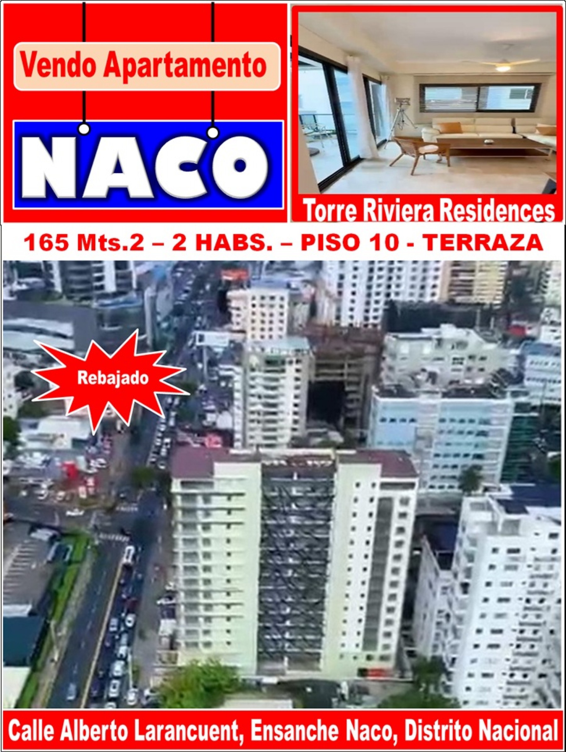 Vendo Apto de Lujo en TORRE RIVIERA RESIDENCES de NACO, 2 HABS. 165 Mts.2, Piso 10, DE OPORTUNIDAD