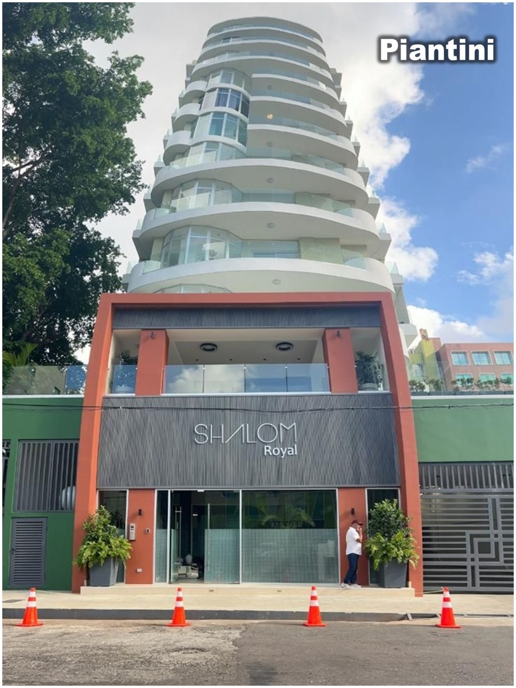 El Apartamento está ubicado en la TORRE SHALOM ROYAL VIII de calle prolongación Fantino Falco #5, Ensanche Piantini, Distrito Nacional.