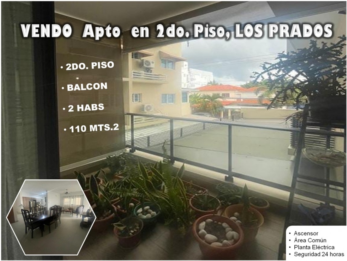 Vendo Apto de 2da. con 2 HABS., 110 Mts.2, Balcón en LOS PRADOS, Oportunidad
