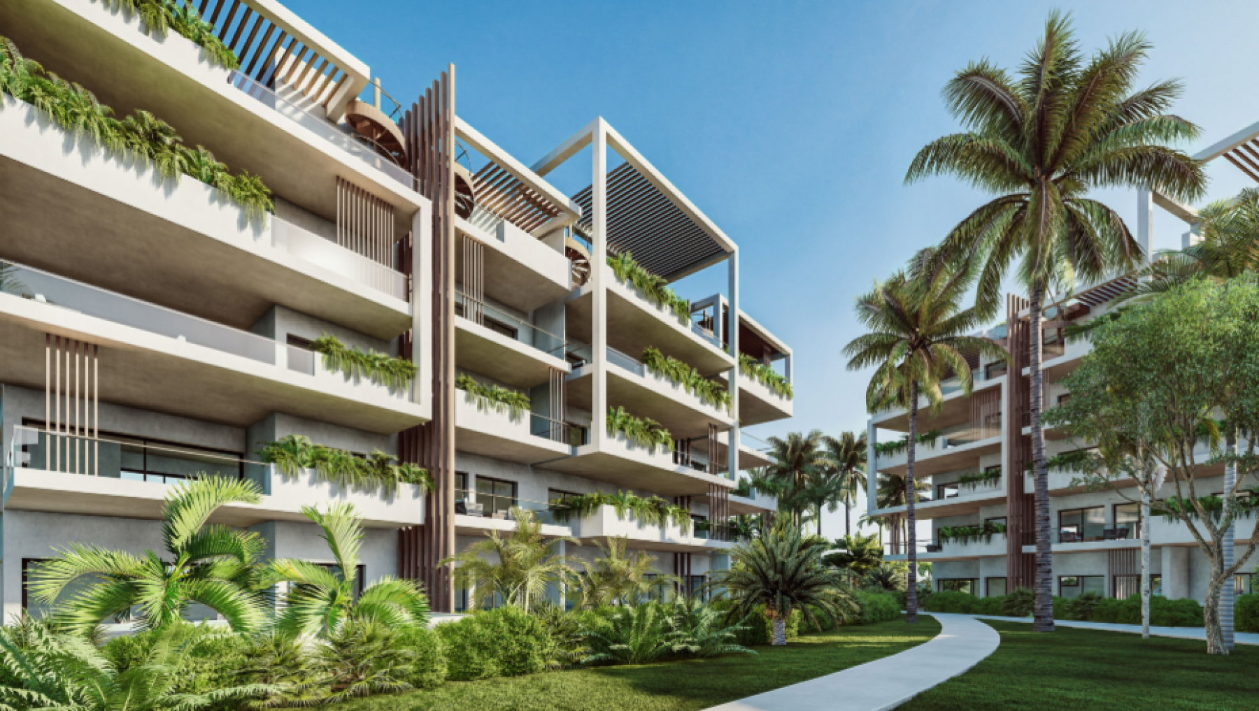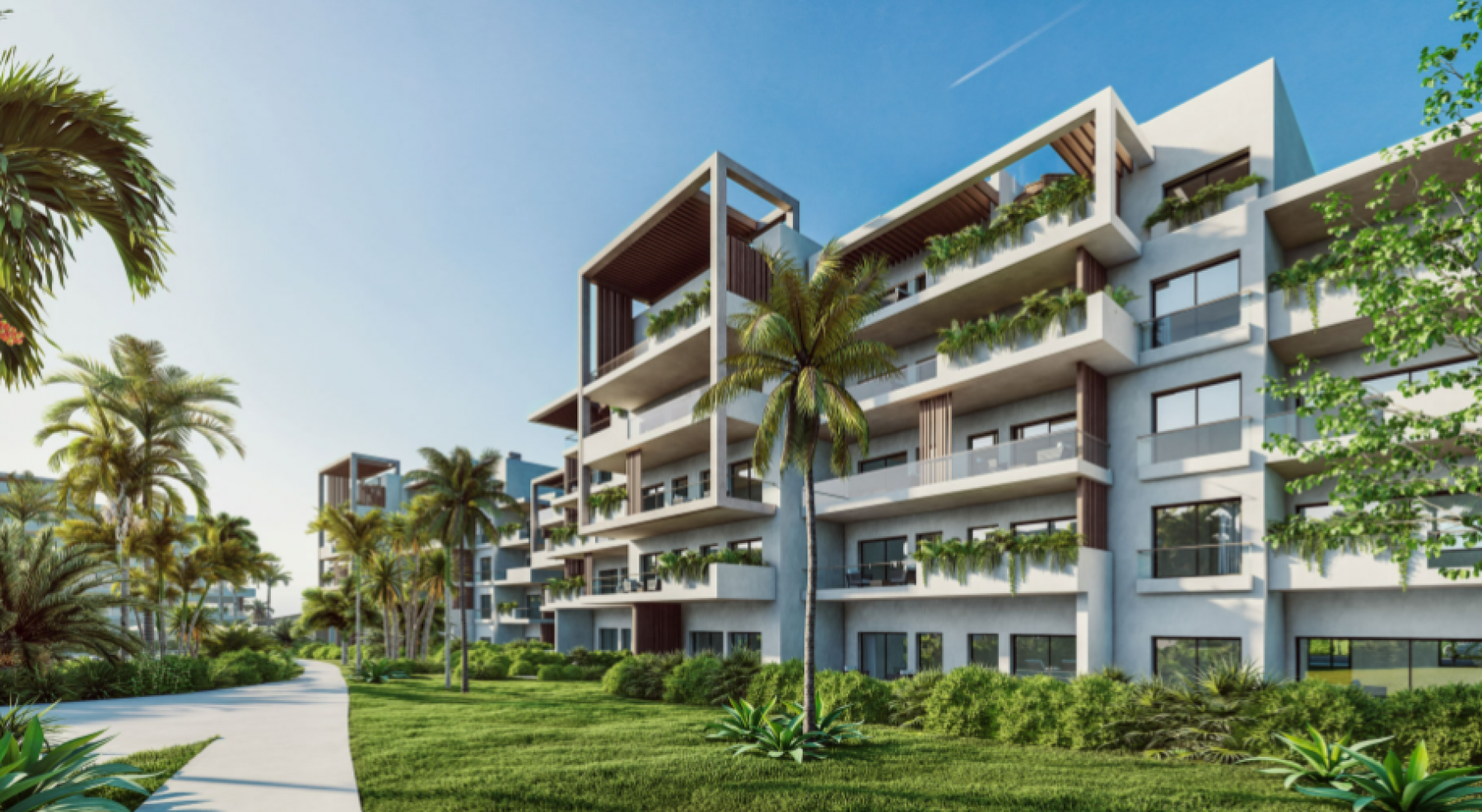 The complex will have 470 apartments distributed in 12 buildings of 5 levels, surrounded by tropical gardens, open spaces and landscaping inspired by Caribbean nature, offering a fresh, organic and harmonious.