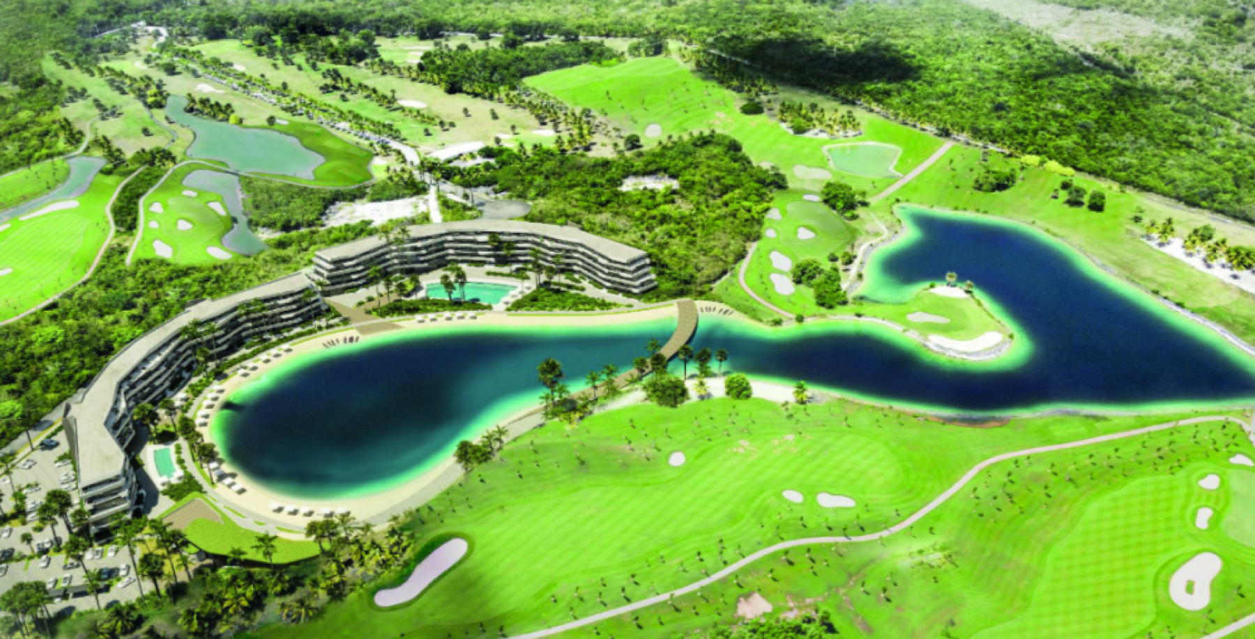The project is located within an 18-hole golf course designed by P.B. Dye, offering open views of the lake and large private terraces to enjoy the tropical climate.
