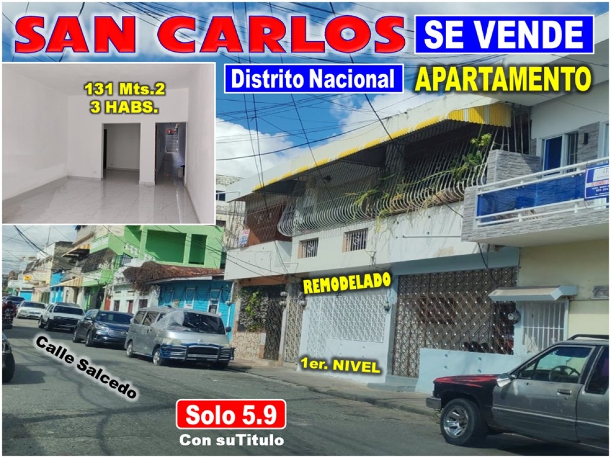 Vendo APTO en SAN CARLOS, DISTRITO NACIONAL, 3 HAB, 131 Mts.2, 1er Nivel, OPORTUNIDAD UNICA