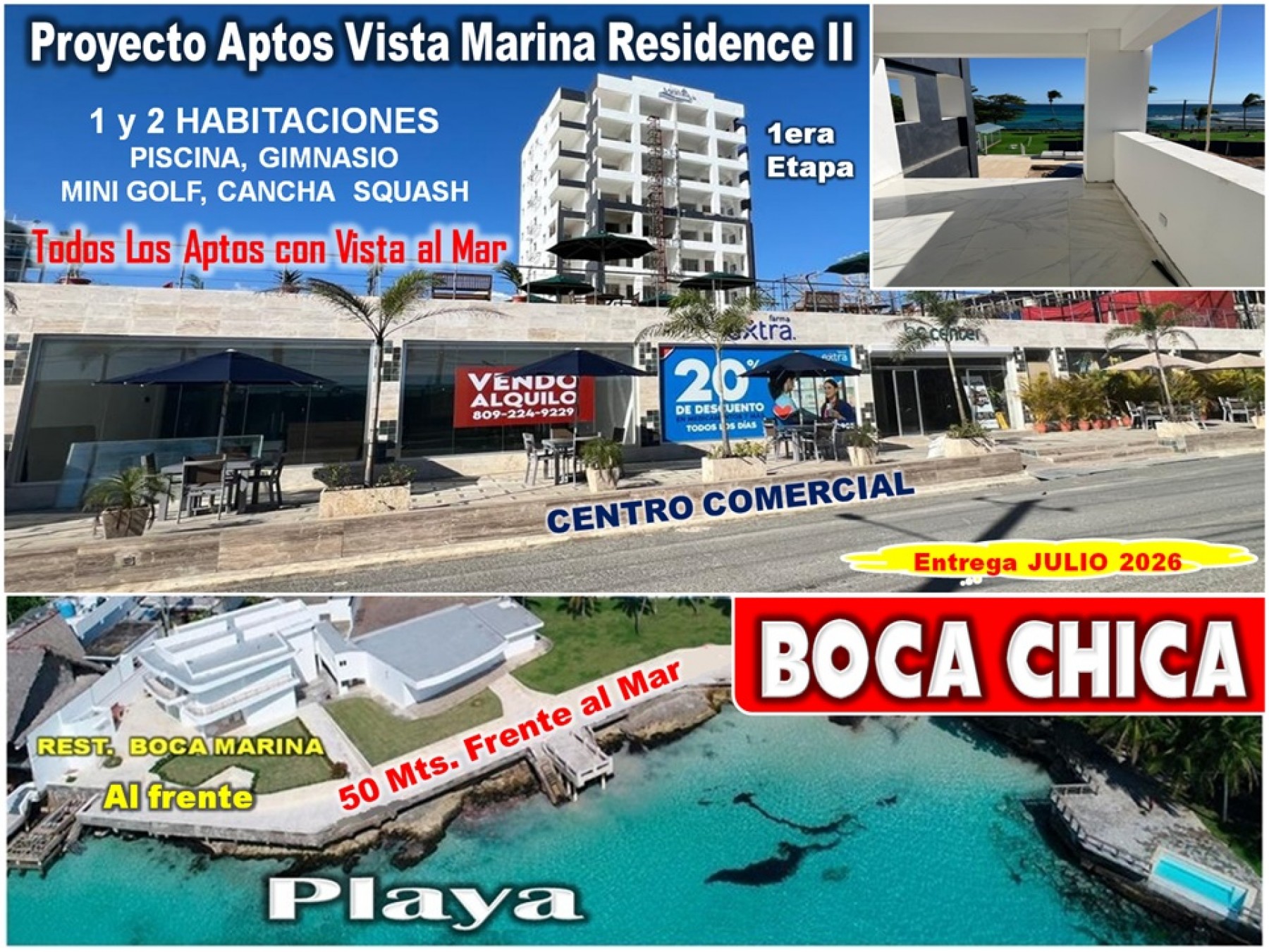 PROYECTO EXCLUSIVO DE APTOS EN BOCA CHICA, TODOS CON VISTA AL MAR, a 50 Mts. de Distancia, y a Pasos de los Principales Restaurantes del Area: BOCA MARINA, ST. TROPEZ, NEPTUNO, entre otros.