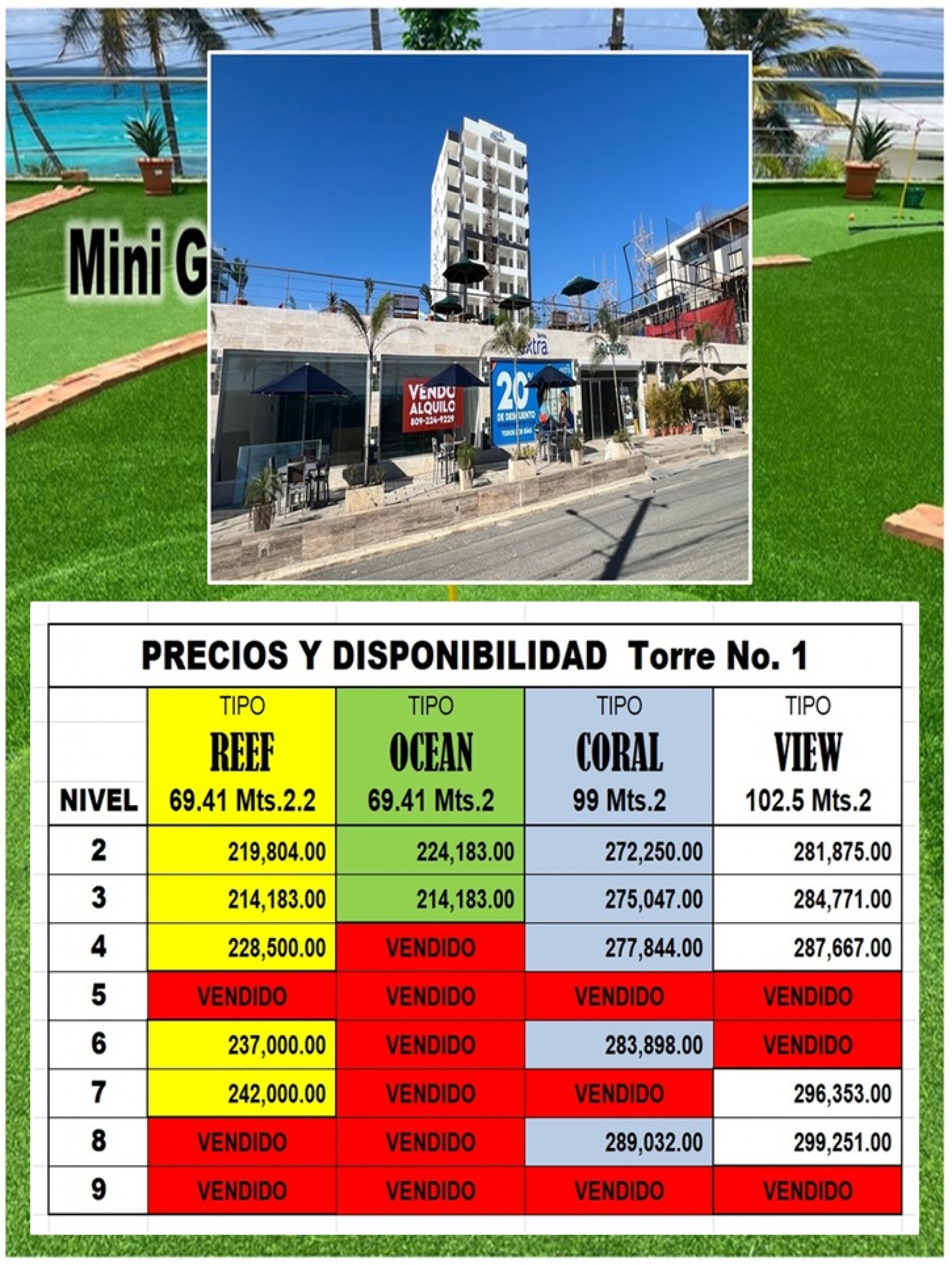 VISTA MARINA RESIDENCES II es un proyecto exclusivo de 10 niveles, desarrollado con los más altos estándares de calidad, con diseño moderno y vanguardista. Incluirá en el 1ER NIVEL un CENTRO COMERCIAL y área de mini Golf, así como Cancha de Squash. Parqueos cómodamente ubicados.