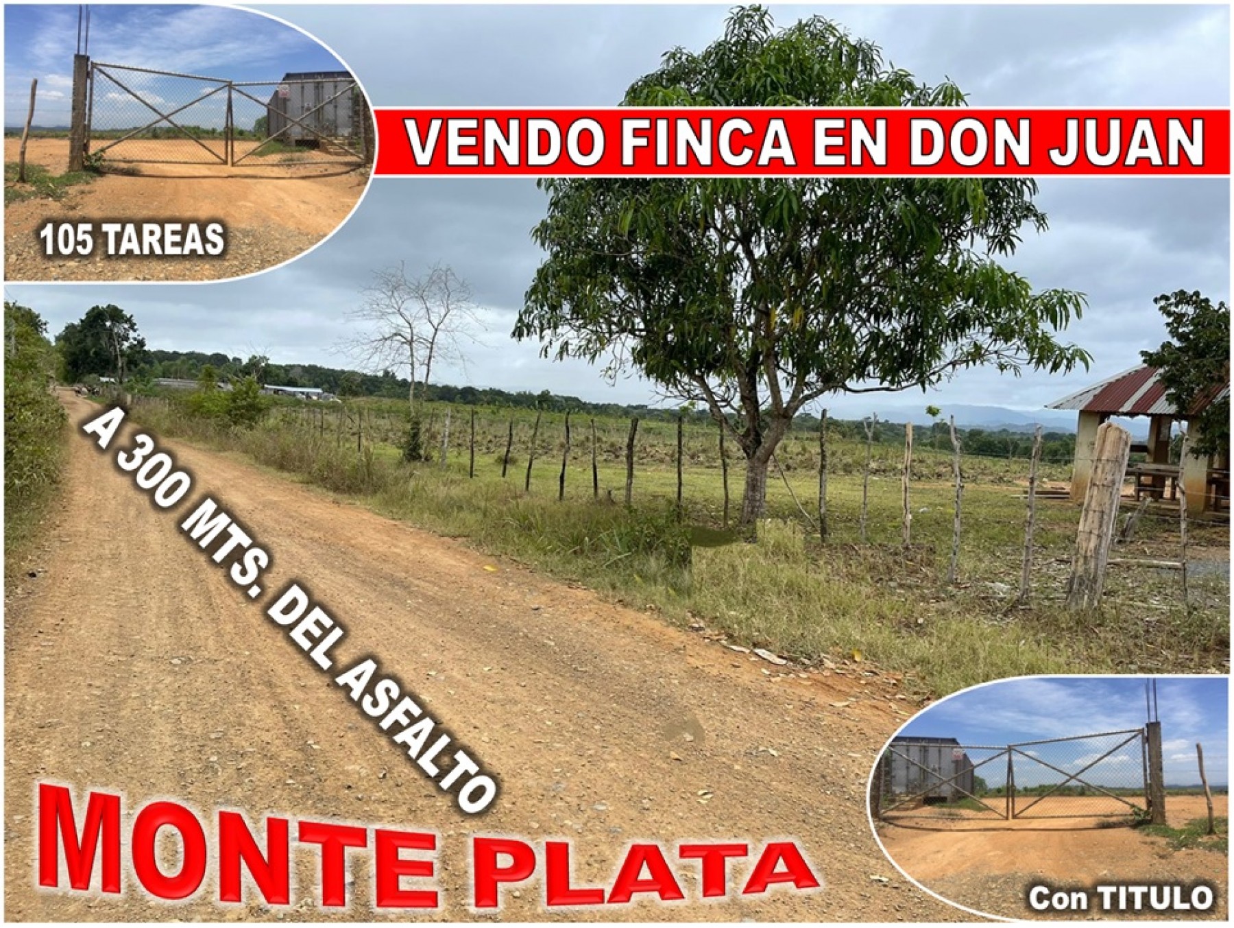VENDO SUPER FINCA DE 105 TAREAS A 300 Mts. DE LA CARRETERA EN DON JUAN, MONTE PLATA