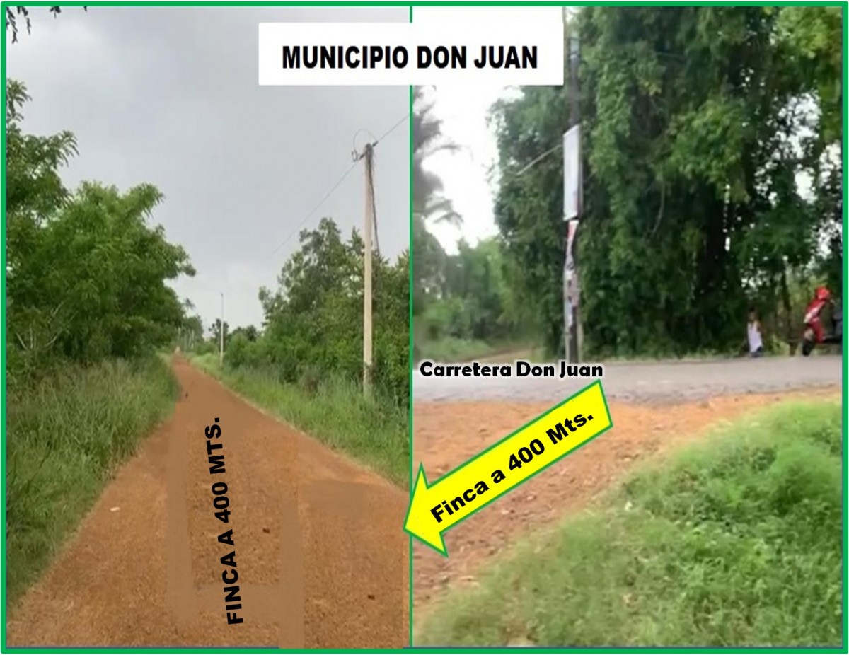 ESTA UBICADA A 300 METROS DEL ASFALTO (CARRETERA PRINCIPAL DE DON JUAN), MONTE PLATA, CON UNA ACCESO QUE PUEDE LLEGAR HASTA EN UNA BICICLETA.