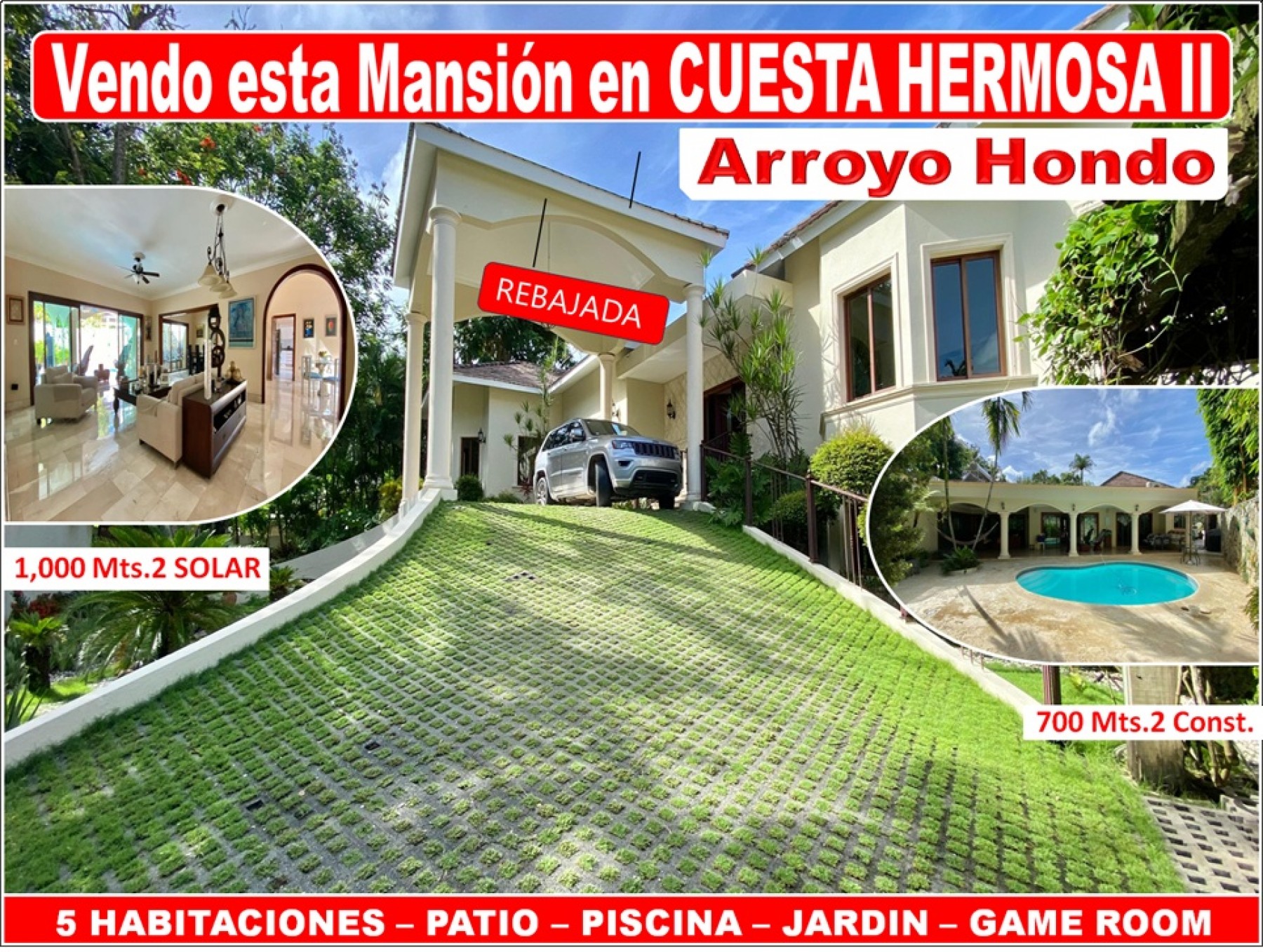 Vendo Imponente Mansión en Cuesta Hermosa II, 5 HABS., 1,000 Mts.2, Patio, Piscina, REBAJADA