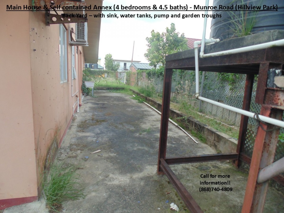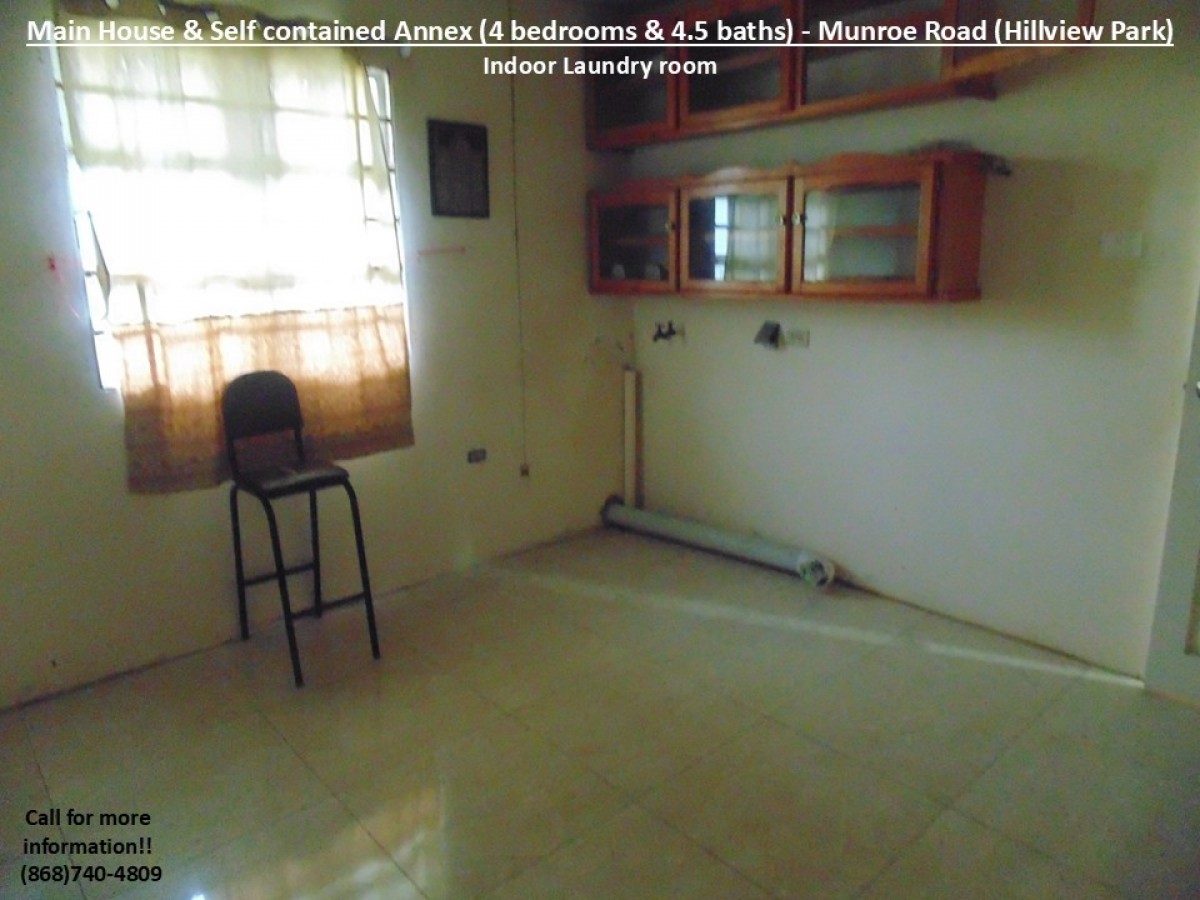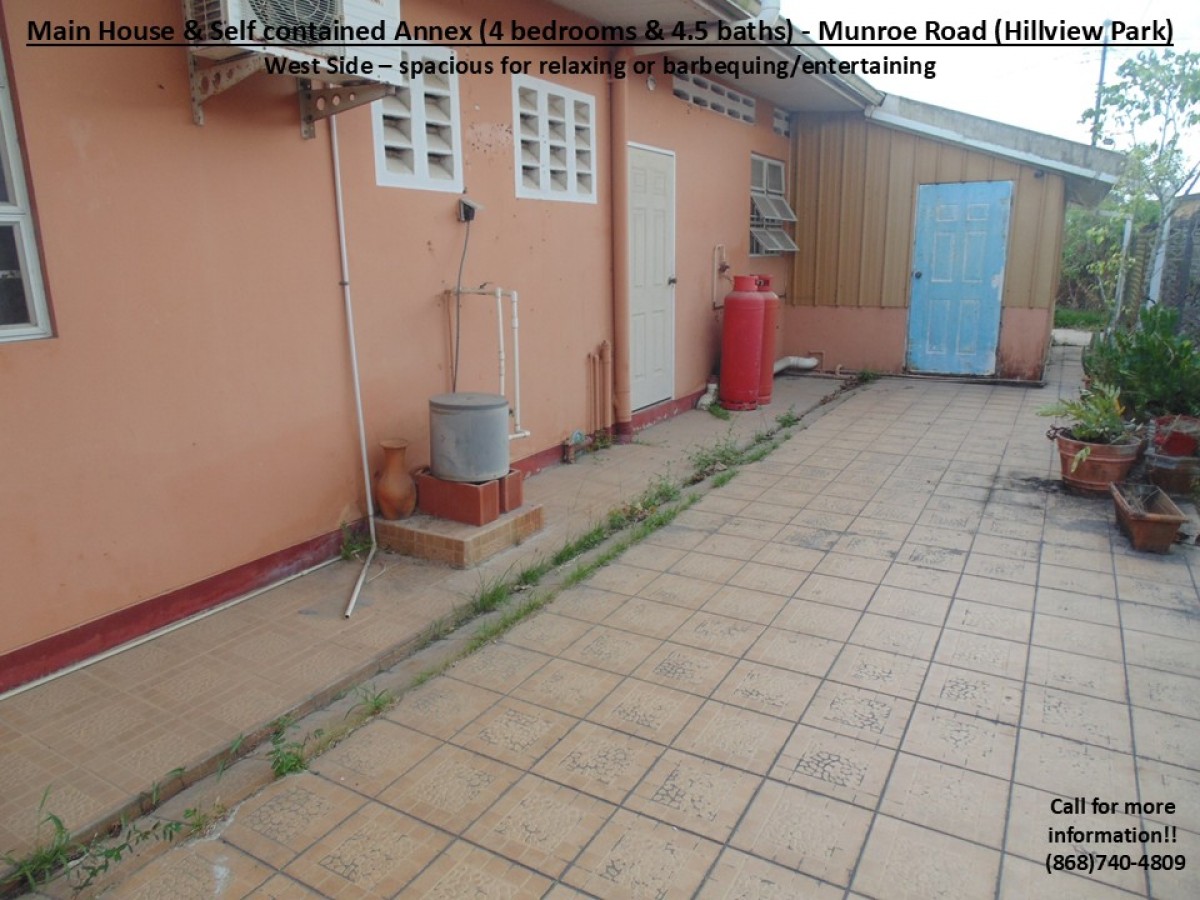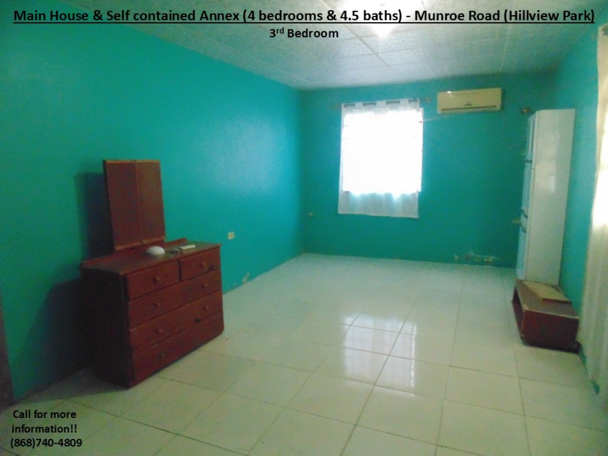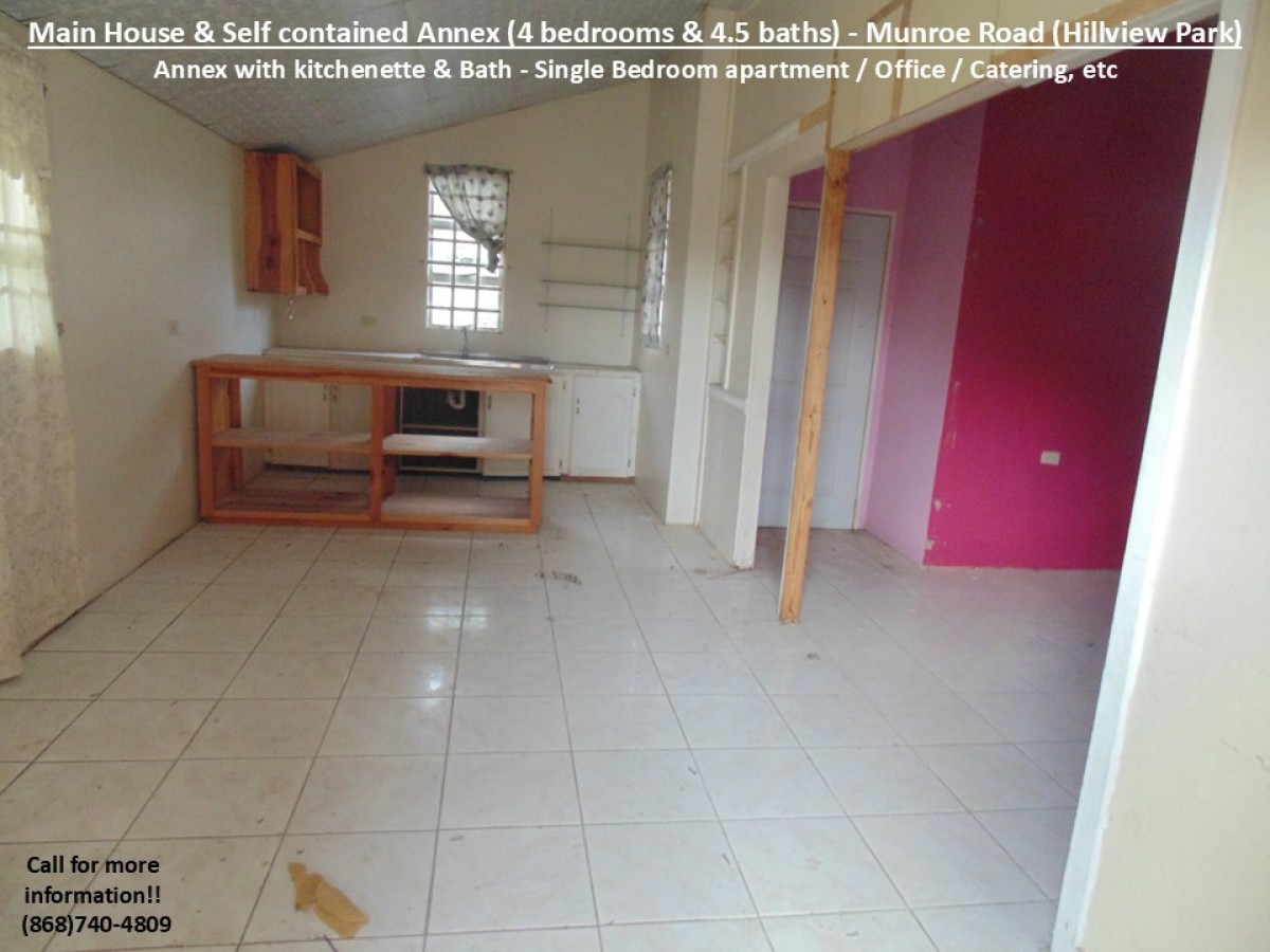 Together with our Partnering Agents, we are pleased to present a property in the popular and busy Munroe Road area which is popular for its residential communities and vibrant commercial activities. This particular property is just off Munroe Road in the well know Hillview Park community. Therefore, it is beneficially located just 7mins from the Uriah Butler Highway and 5mins from the Southern Main Road, with access to multiple routes to the Airport, medical services, groceries/supermarkets, shopping centres/restaurants, gas stations, schools, recreational grounds, places of worship, banking, commerce and many more. Additionally, it is also REDUCED by the motivated Sellers, as now graciously priced at $1.6mil but still NEGOTIABLE!!! This property comprises of a total of 4 Bedrooms & 4.5 baths, a kitchen, 2 kitchenettes and an additional front room (in the following layout):