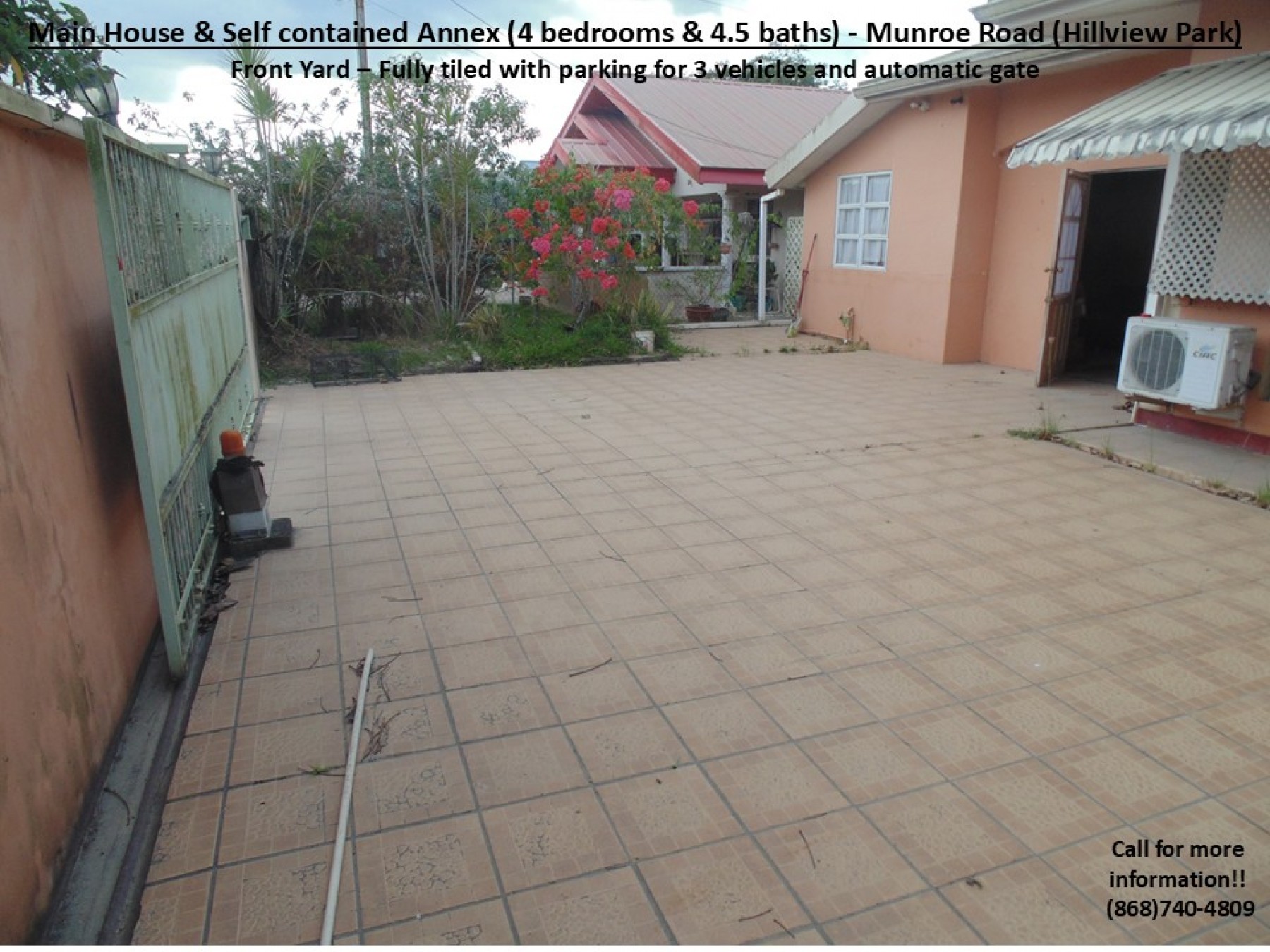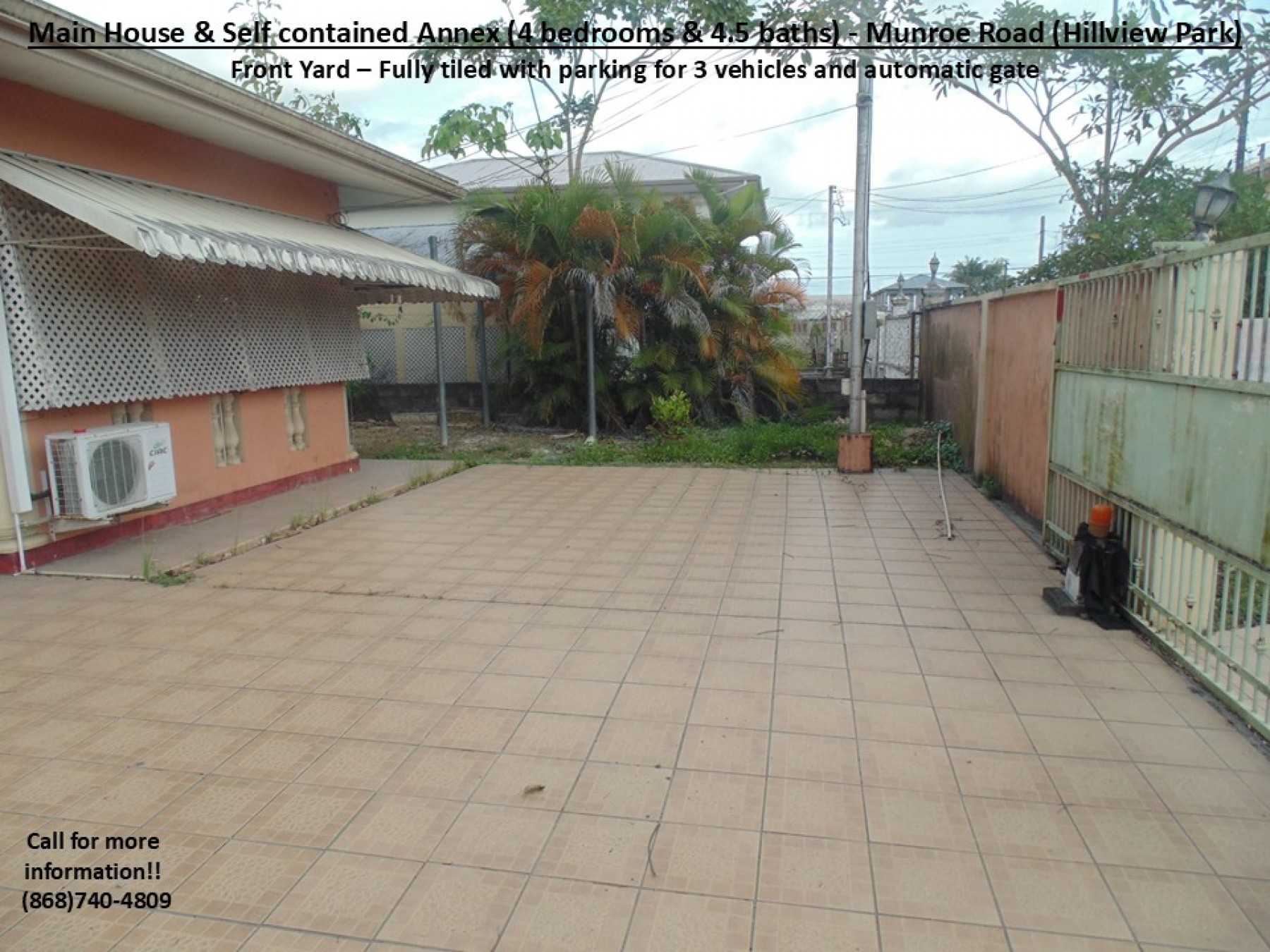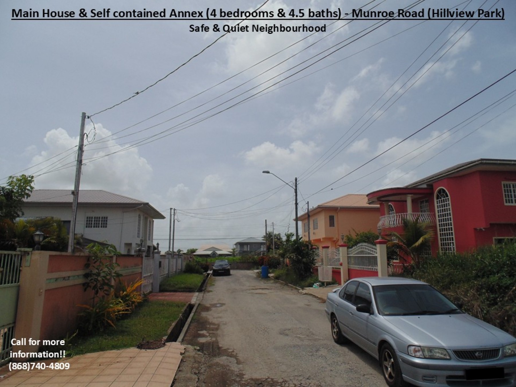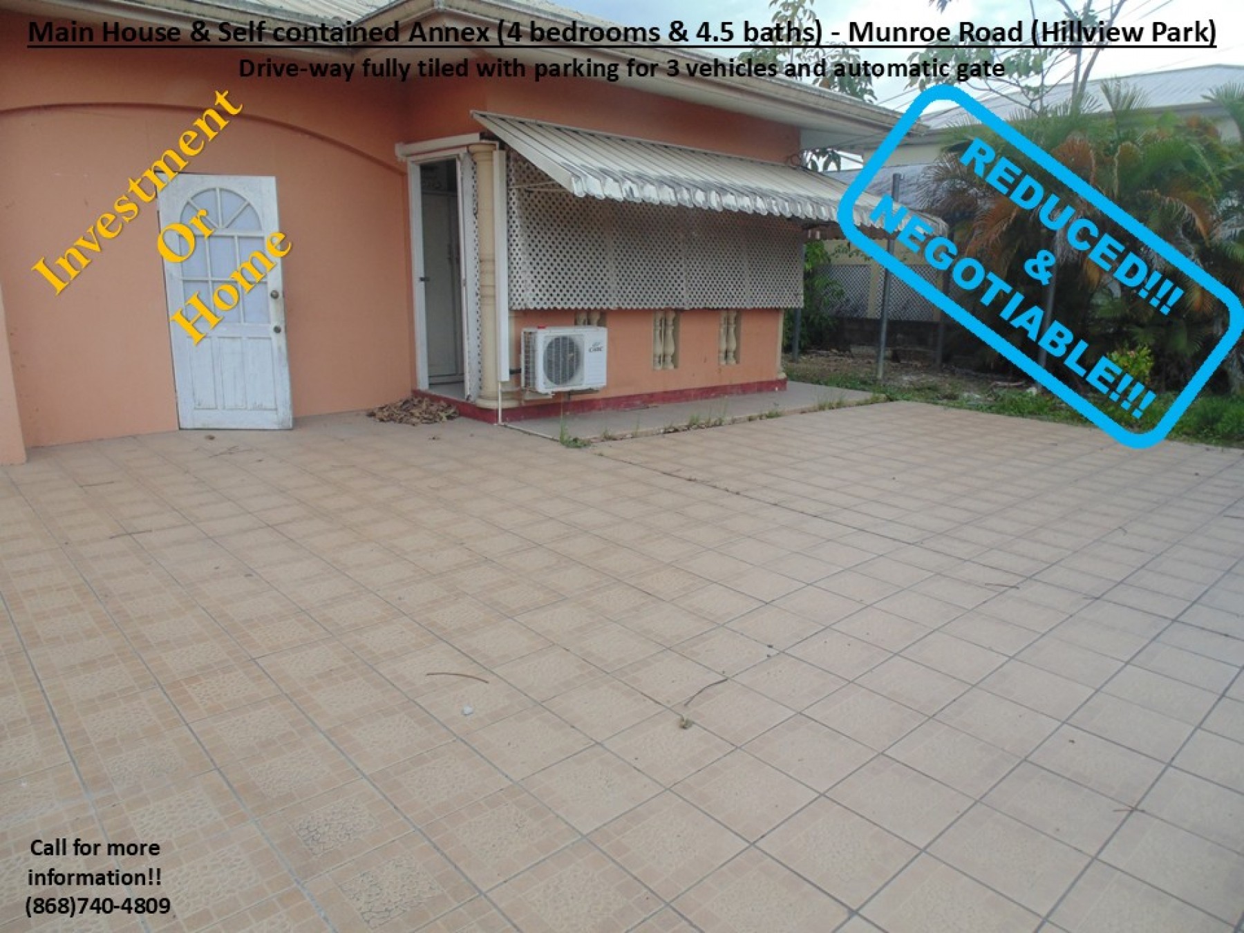 Together with our Partnering Agents, we are pleased to present a property in the popular and busy Munroe Road area which is popular for its residential communities and vibrant commercial activities. This particular property is just off Munroe Road in the well know Hillview Park community. Therefore, it is beneficially located just 7mins from the Uriah Butler Highway and 5mins from the Southern Main Road, with access to multiple routes to the Airport, medical services, groceries/supermarkets, shopping centres/restaurants, gas stations, schools, recreational grounds, places of worship, banking, commerce and many more. Additionally, it is also REDUCED by the motivated Sellers, as now graciously priced at $1.6mil but still NEGOTIABLE!!! This property comprises of a total of 4 Bedrooms & 4.5 baths, a kitchen, 2 kitchenettes and an additional front room (in the following layout):