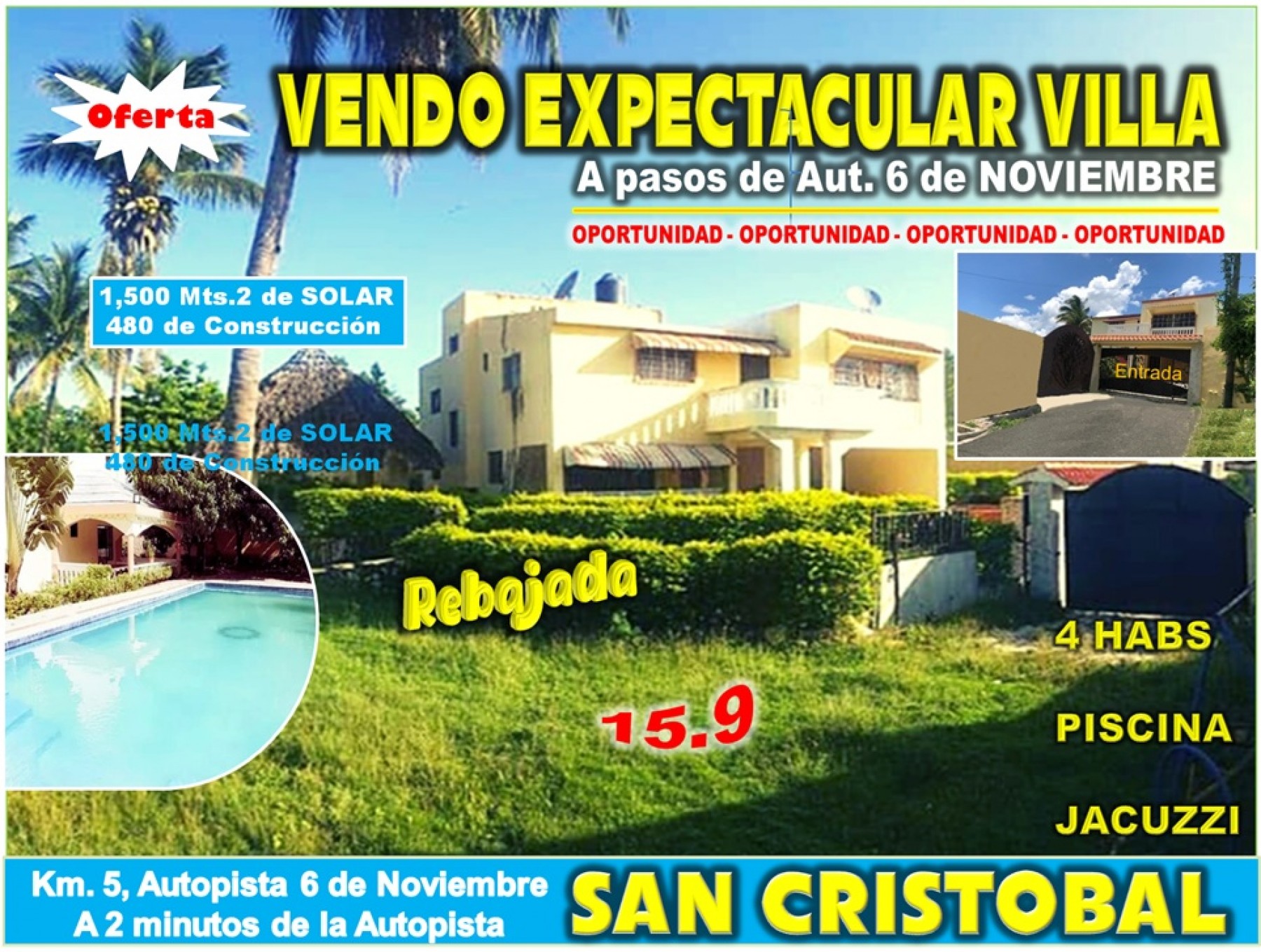 EL MEJOR NEGOCIO, INVIERTA EN ESTA VILLA EN SAN CRISTOBAL, Aut. 6 de Noviembre, a 1 minuto de la Autopista, REBAJADA.