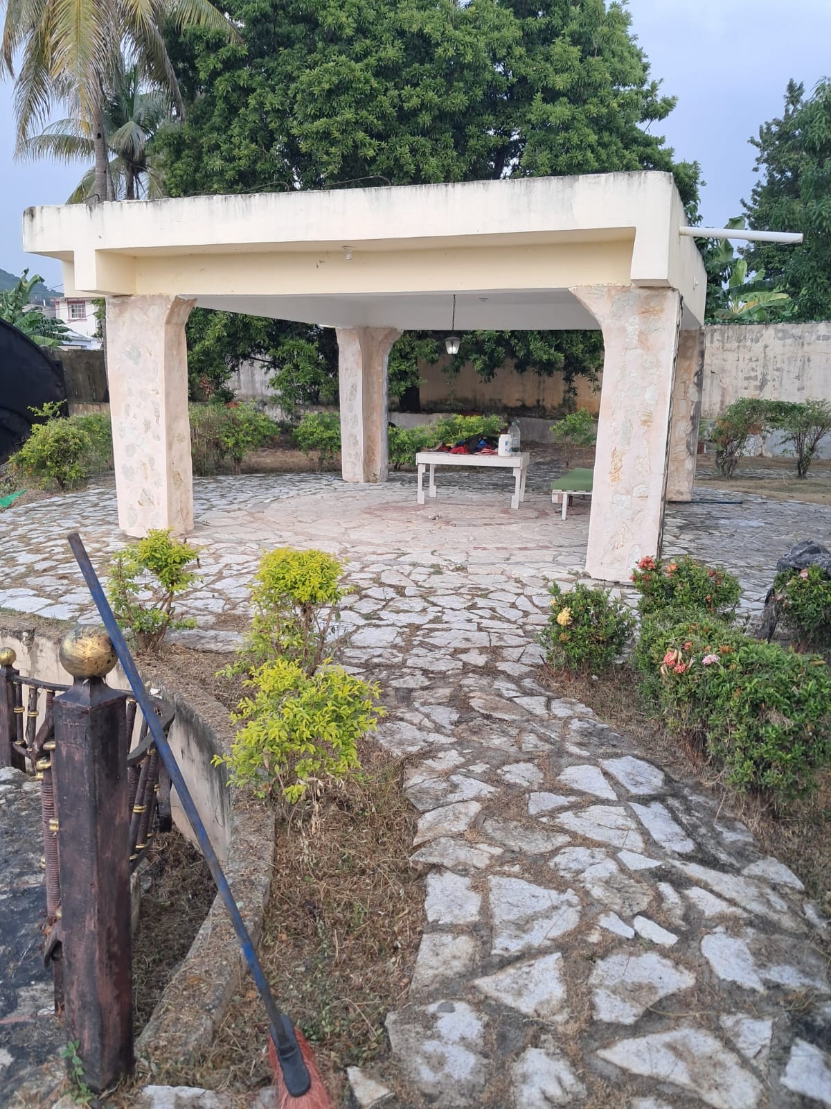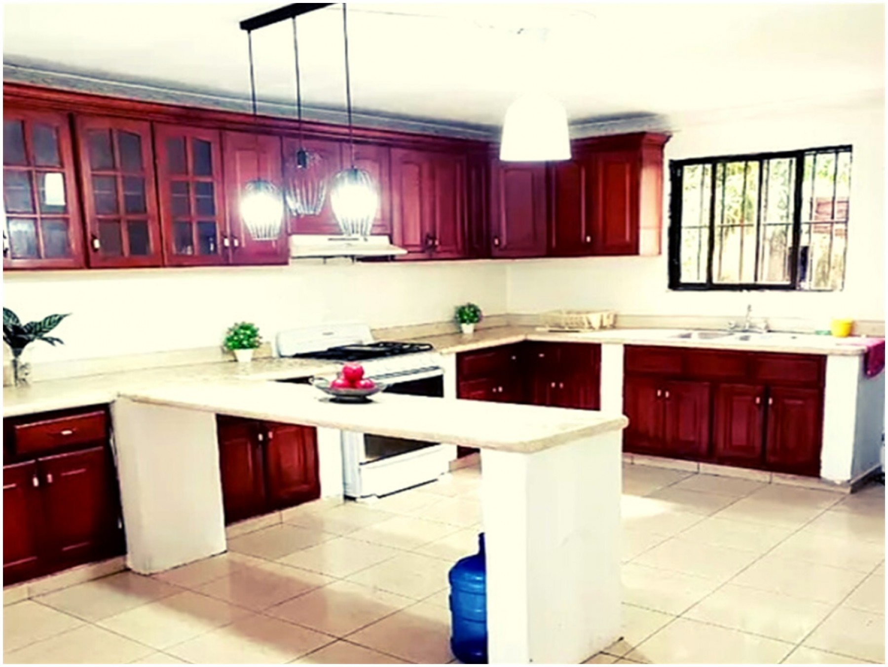 Amplio jardín con piscina, cercado completo con altas paredes de Block. Zona tranquila y de buenos vecinos, con todos los servicios disponibles.
