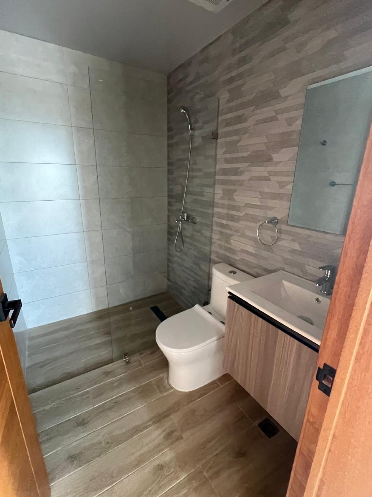 Los apartamentos que componen nuestro proyecto constan de las siguientes terminaciones y características comunes: madera preciosa en roble (puertas y closet), pisos en porcelanato, cocina modular importada española, gas común con medidor, lokers asignados a los apartamentos de 2 y 3 habitaciones, planta eléctrica, ascensor, preinstalación para A/A, cisterna, caseta de bomba y pozo. Este proyecto cuenta con 6 niveles, el 1er nivel de parqueos, 4 niveles de apartamentos y por último el 6to nivel pertenece al área social, diseñado bajo los estándares de calidad y exigencia para nuestros clientes.
