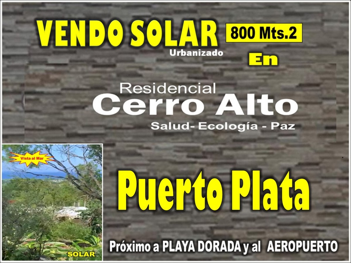 El Solar están ubicado en la Urbanización Cerro Alto, Puerto Plata., República Dominicana, próximo a Playa Dorada y Aeropuerto, CALLES ASFALTADAS.