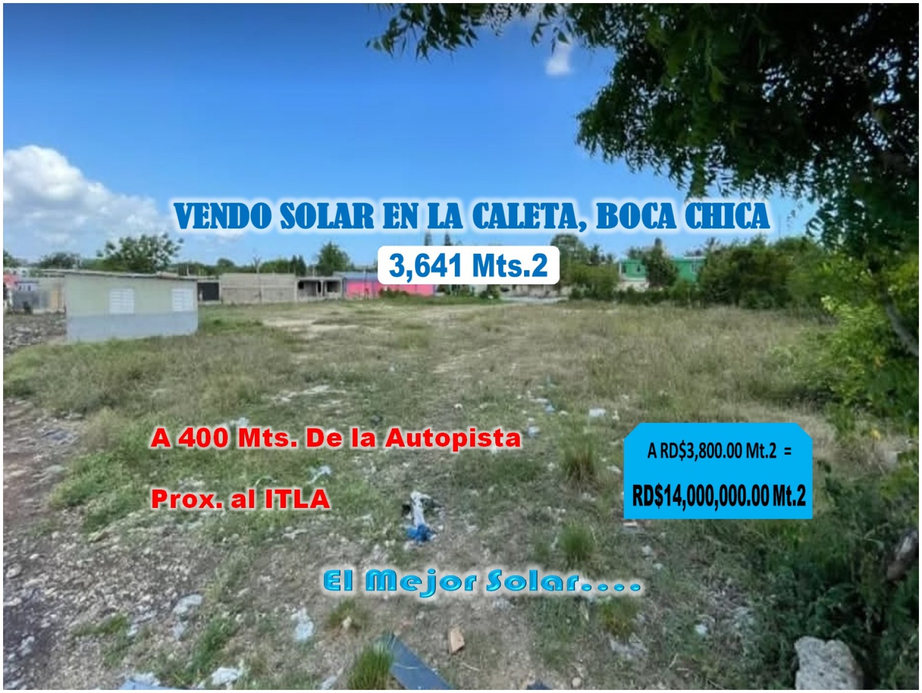 Excelente Solar de 3,641 Mts.2 Próximo al ITLA, en LA CALETA de Oportunidad