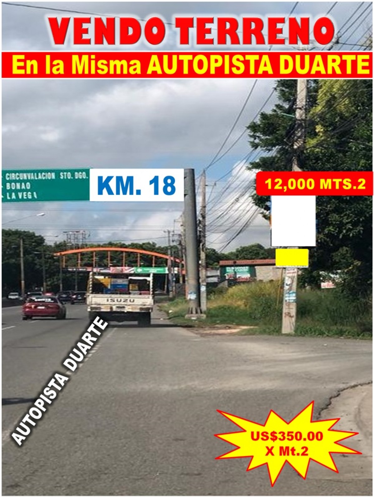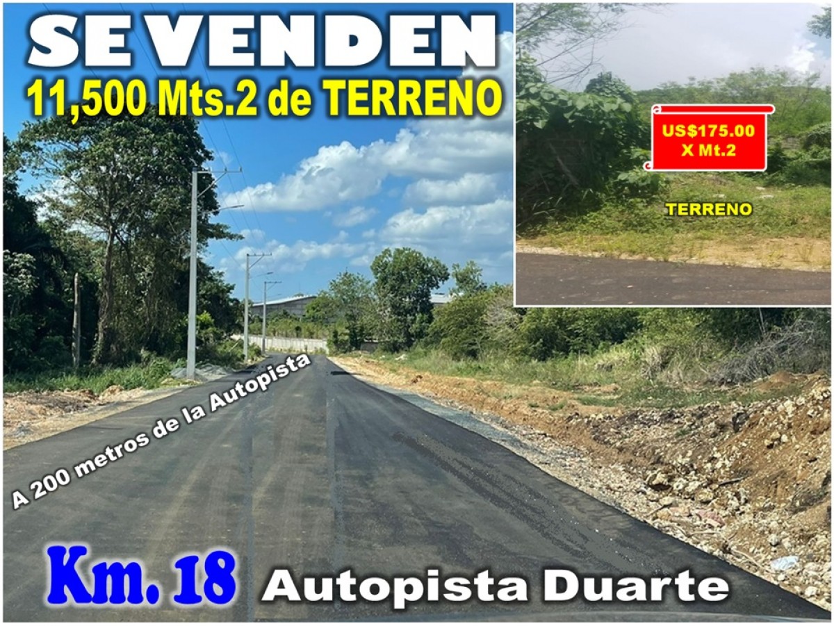 VENDO 12,000 Mts.2 en la MISMA AUTOPISTA DUARTE, Km 18 de OPORTUNIDAD