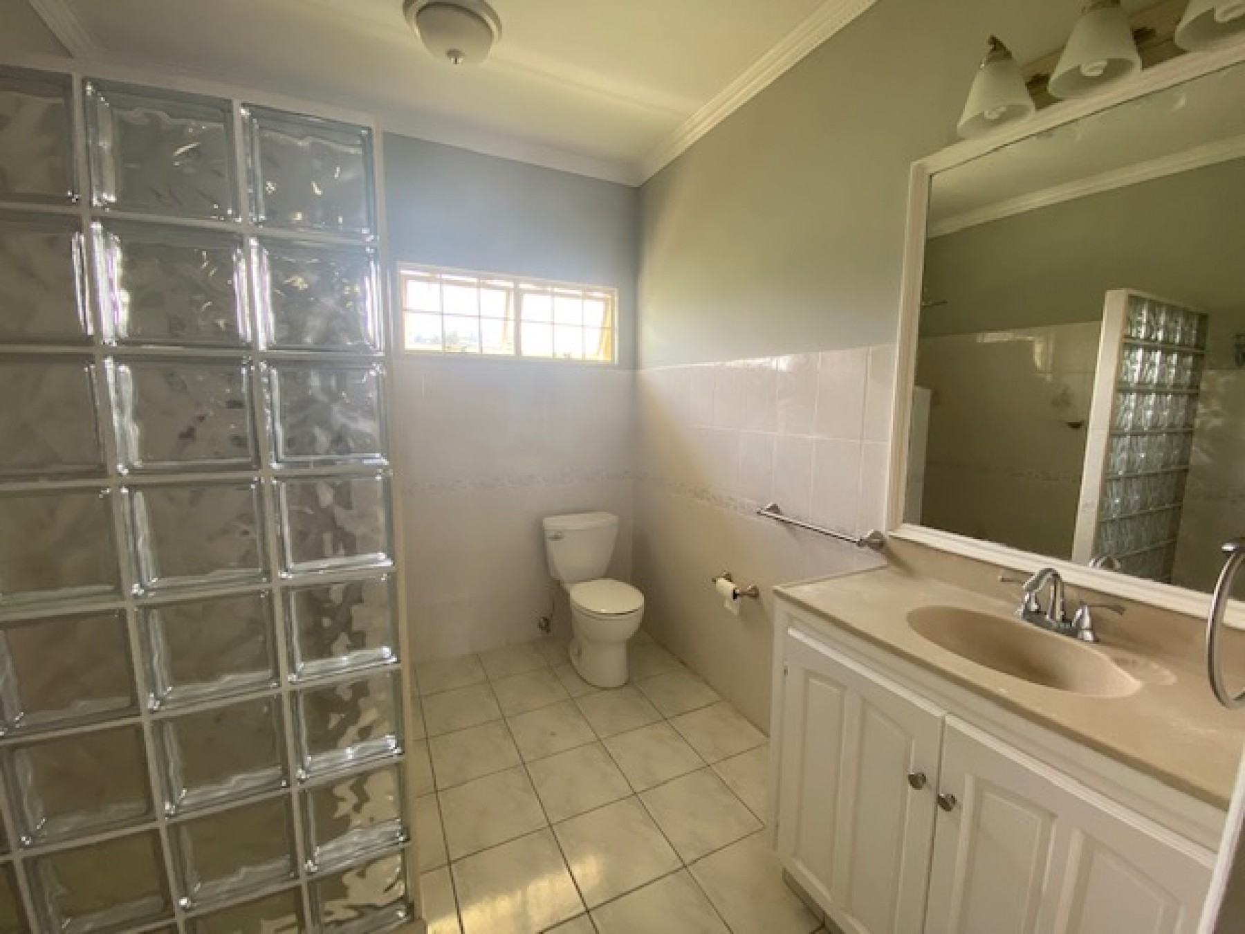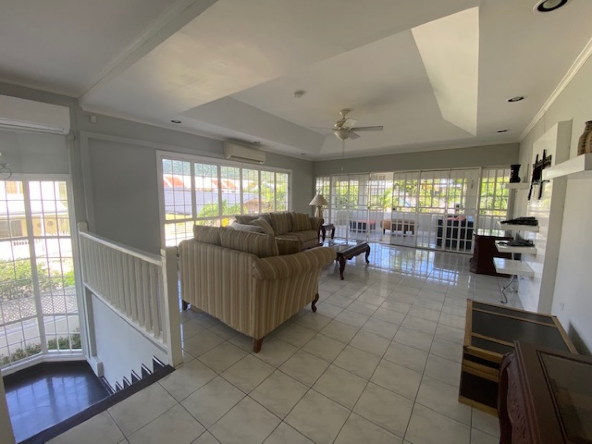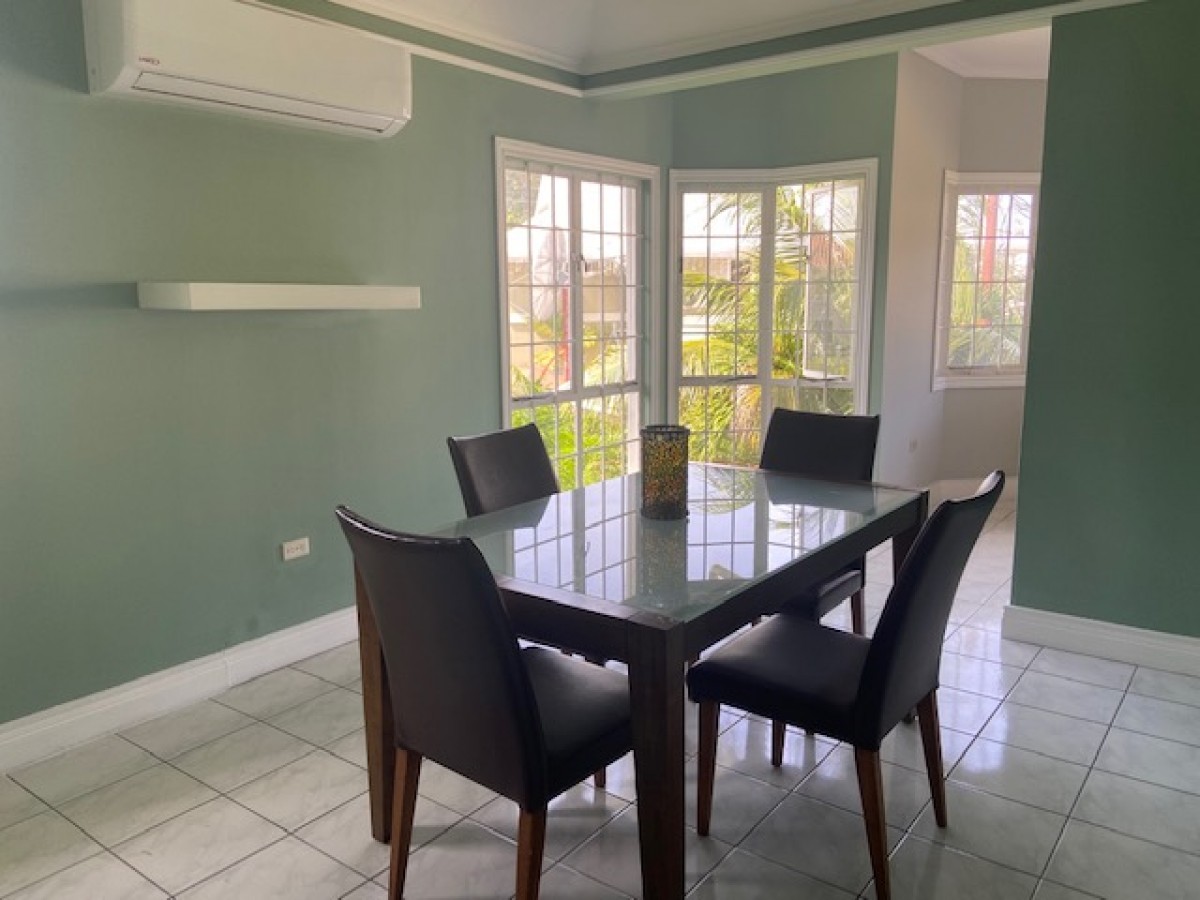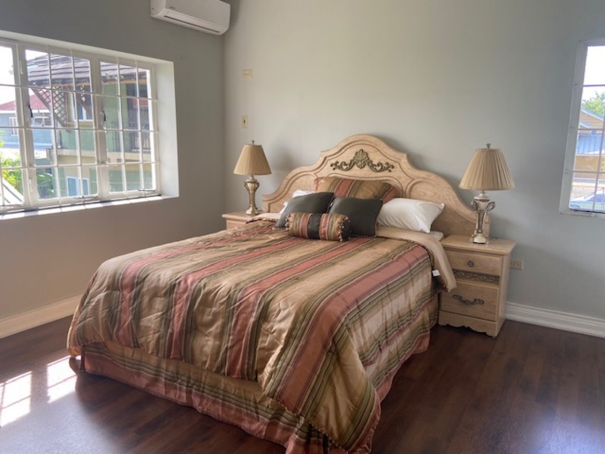 Esta casa tiene cuatro dormitorios, tres en el piso superior, el dormitorio principal tiene baño. La planta baja tiene el cuarto dormitorio, que es independiente (su propia cocina, baño y sala de estar) que se abre al porche y al área de la piscina.
