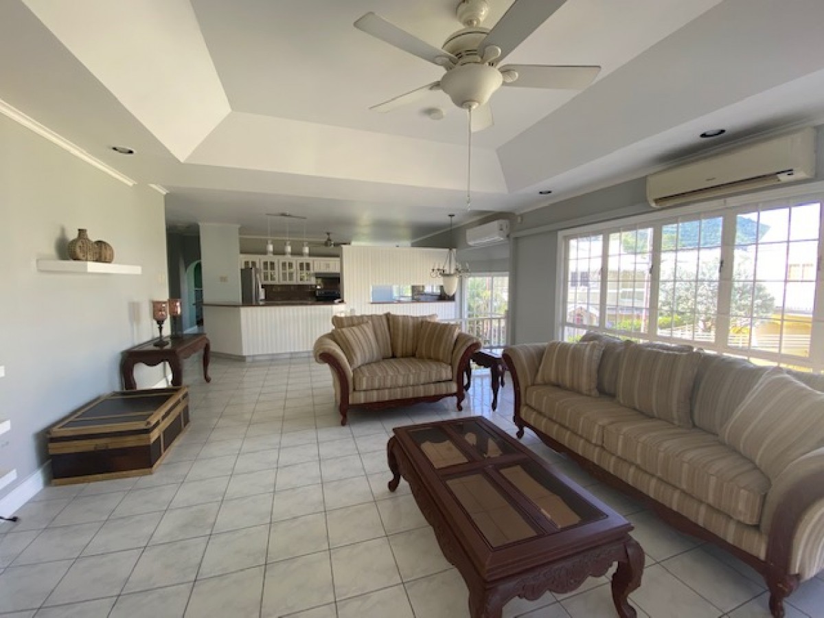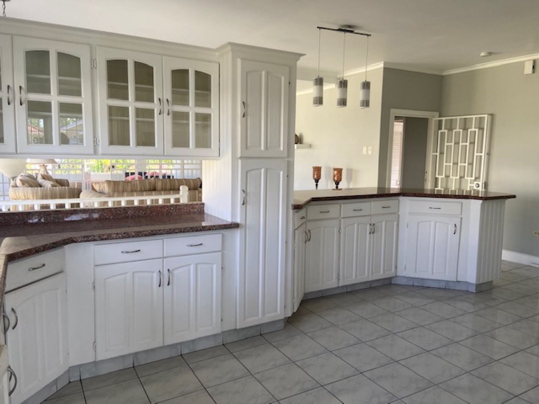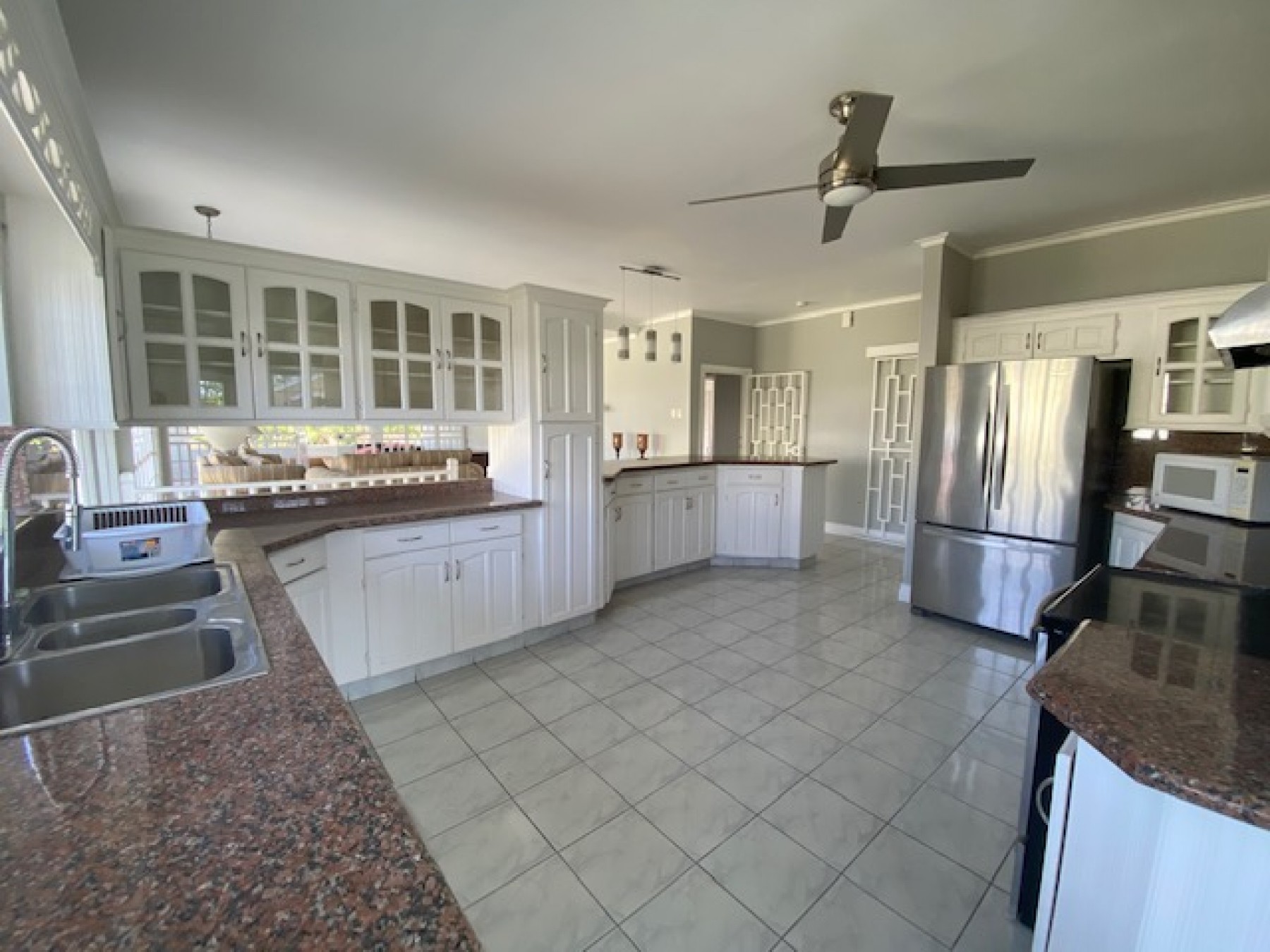 Esta casa tiene cuatro dormitorios, tres en el piso superior, el dormitorio principal tiene baño. La planta baja tiene el cuarto dormitorio, que es independiente (su propia cocina, baño y sala de estar) que se abre al porche y al área de la piscina.